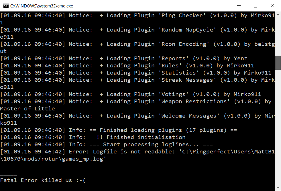 Hello, I am trying to run GSManager on my CoD4 server, but it keeps giving me the error "Logfile is not readable". The path to the logfile seems correct, but is there a way I can manually set the path to the logfile in the config?