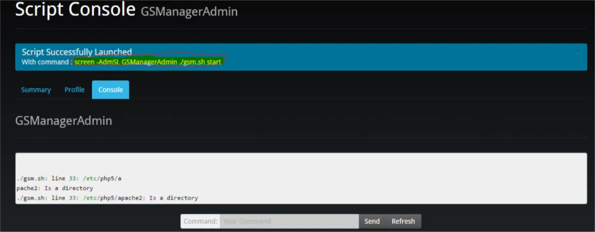 Recently I tried to run GSManager through BrightGame Panel in my debian VPS. So the other admins can control GSManager without accessing SSH. But unfortunately, the BGPanel runs the executable in a screen.