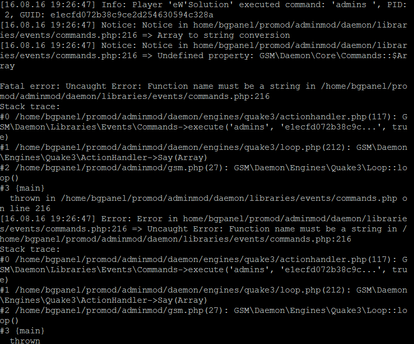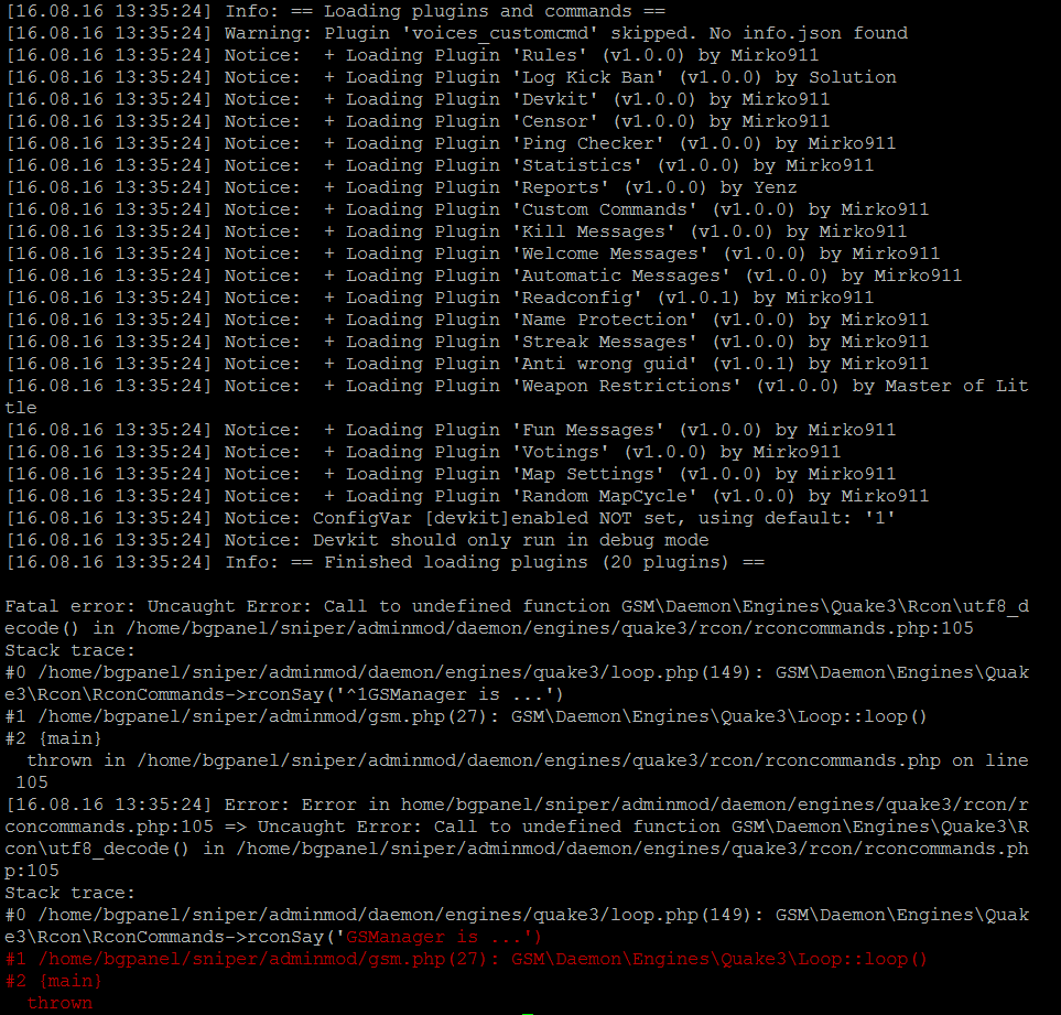 2. Wenn ich !banip kommt: Unrecognized Command: !banip