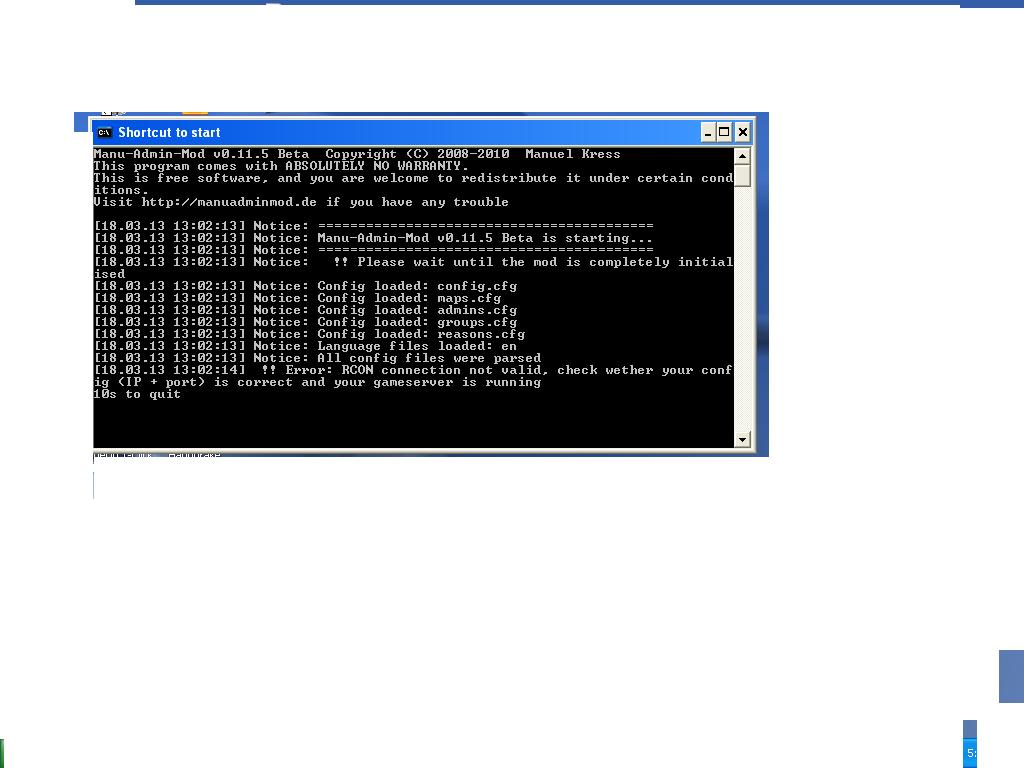 Code1:06 [14.03.13 15:11:24] PHP-Error: Warning in :\Program Files (x86)\Steam\steamapps\common\Call of Duty Modern Warfare 2\main\adminmod #1 iSnipe Nukey\plugins\banip.php:262 => SQLite3::prepare(): Unable to prepare statement: 11, database disk image is malformed [14-Mar-2013 15:11:24 Europe/Berlin] PHP Fatal error: Call to a member function bindValue() on a non-object in C:\Program Files (x86)\Steam\steamapps\common\Call of Duty Modern Warfare 2\main\adminmod #1 iSnipe Nukey\plugins\banip.php on line 268Help..