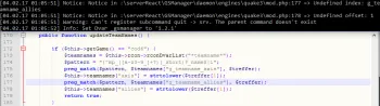 In getResponse() mod just takes substring from first \n to end of the string. ( "g_GameType" is: "war^7" default: "war^7" \n Domain is any text) and returns it, after that rconGetDvar() makes array from this string (0 => "g_GameType" is: "war^7" default: "war^7" 1 => Domain is any text), after that it returns value of dvar with regex.