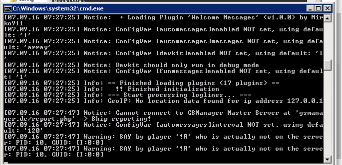 when i execute command in game gsmanager will load again and says that : gsmanager is now watching the server -